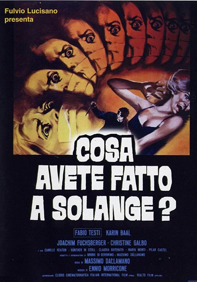 Dallamano firma complessivamente un buon giallo, che possiede come principale difetto il titolo che gli è stato appioppato in italiano, decisamente poco efficace e che rischia di far pensare ad una trashata di terz’ordine senza capo nè coda. Eppure si tratta di un thriller nostrano decisamente ben riuscito, con buone interpretazioni sia di Fabio Testi che dell’irreprensibile (e al tempo stesso affascinante) Karin Baal, nei panni di una moglie in crisi matrimoniale. A tal proposito bisogna premettere che quest’ultimo personaggio viene sviluppato con le giuste differenze rispetto ad altre circostanze sceniche simili: non può che venire in mente, a riguardo, la crisi della coppia de Quattro mosche di velluto grigio. Questo per dire a chiare lettere che questo film non ricade nel “già visto” o “già sentito”, e questo sia a livello di trama – un soggetto ispirato al romanzo The Clue of the New Pin di Wallace – che di messa a punto scenica. “Cosa avete fatto a Solange“, che è anche la domanda fatidica da porsi nel momento clou della pellicola, rielabora sapientemente gli stereotipi del genere, confinando pero’ solo in parte il senso di noia che pervade lo scorrimento della storia nella sua parte centrale.