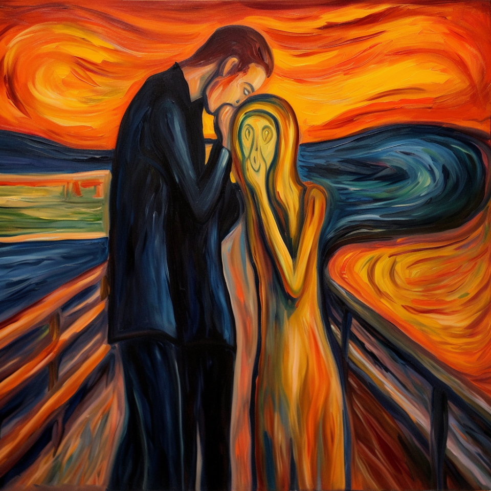 Un amore impossibile in stile Munch, generato da una IA.