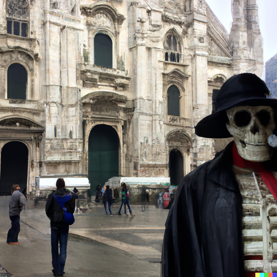 Jason Voorhees mercante d’arte a Milano, vicino al Duomo