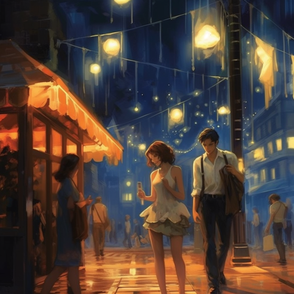 Personaggio 1: (entusiasta) Oh ragazzi, che serata movimentata! Ma chi avrebbe mai pensato di vedere te, Marco, innamorato persino di un’insegna luminosa?